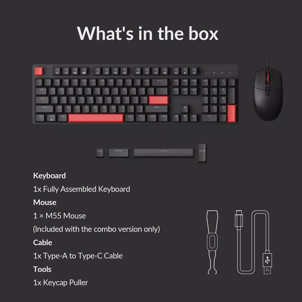 KIT Teclado Mecánico LEMOKEY X2 , 100% QMK Cableado x USB-C + Mouse M55 ( Cableado )