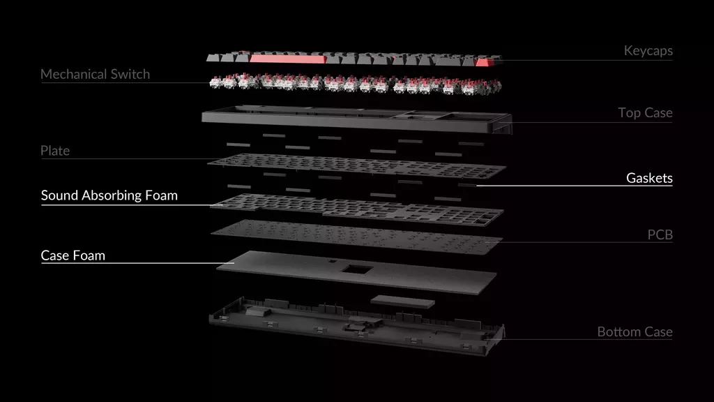 El Lemokey X3 utiliza una estructura de montaje con junta para reducir la resonancia acústica y ofrecer mayor flexibilidad al escribir. Junto con la espuma insonorizante y la espuma del estuche, proporciona una experiencia de escritura más silenciosa y fluida.